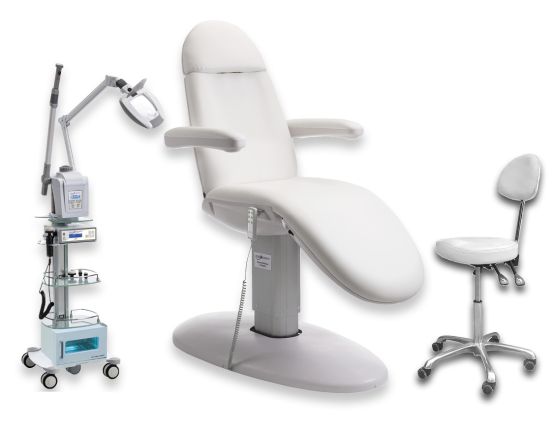 Dieses Gerät ist bestens für ein kleines Studio geeignet und besteht aus einem Aroma-Bedampfer mit Ozon und Timer, einer Lupenlampe 3.0 Dioptrien LED, einem Bürstenschleifgerät mit 4 verschiedenen Aufsätzen und zwei Glasablagen für allerlei Zubehör. Höhe max: 1680 mm, Fuß LxB: 450x450 mm, Volt/Hz: 220-240/50-60